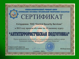 ТОО «Central Security Services» работает на рынке с 2009г., лицензия 98678-1910-ТОО от 03 июля 2009г.